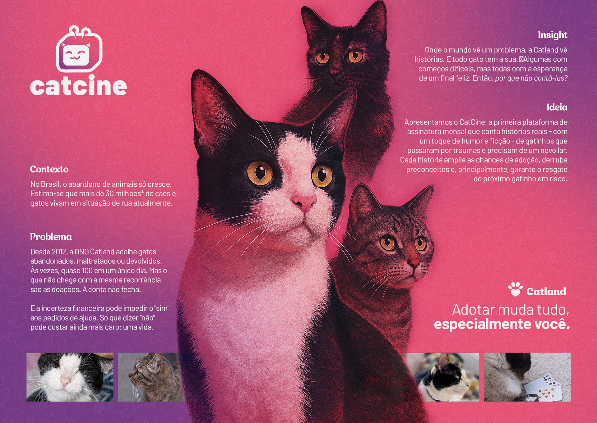 Para transformar o CatCine em realidade, foi criado uma plataforma digital de streaming com um modelo pensado para atrair, engajar e fidelizar apoiadores da causa.