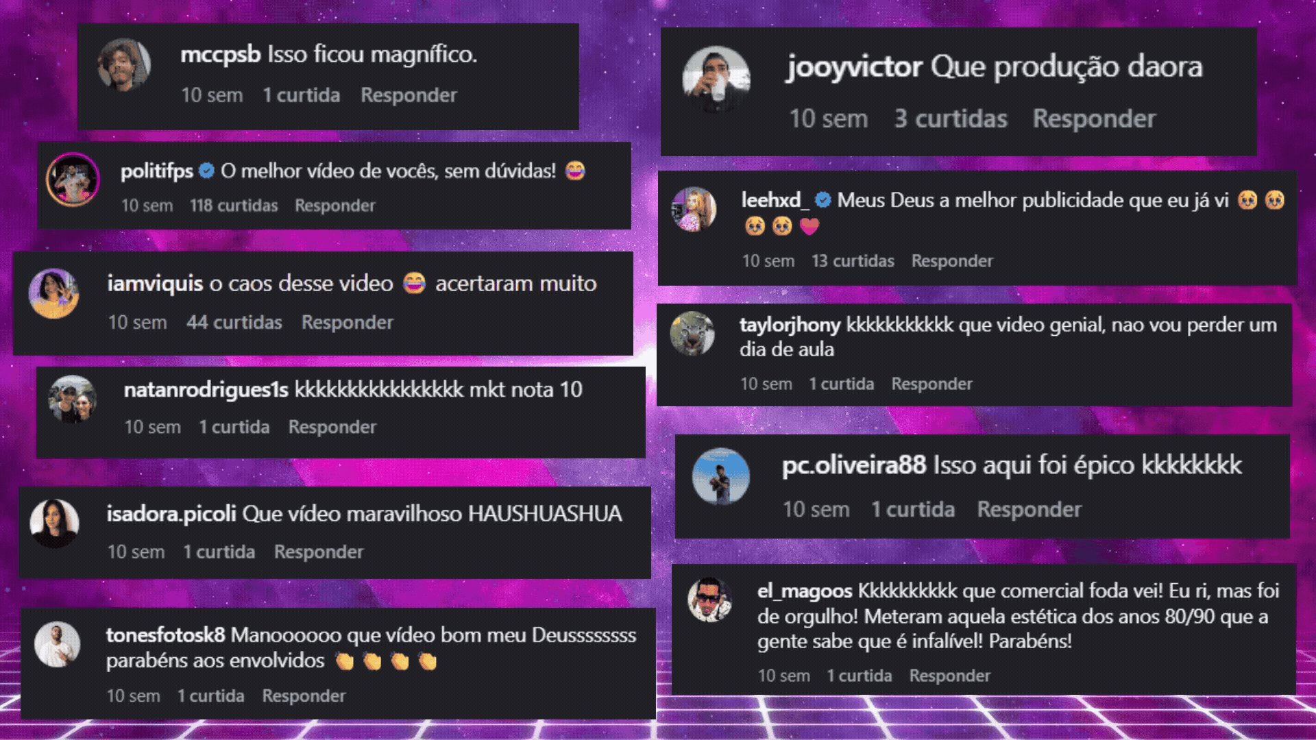 Para lançar a plataforma, fizemos um vídeo especial de lançamento com a estética clássica de propagandas de academia dos anos 80 com nossos embaixadores como protagonistas.